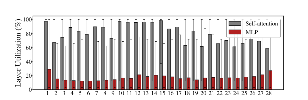 而注意力层激活率高达 80%。这种高利用率表明注意力层的核心通讯机制不适用于特异化的专家。反之具有稀疏特性的 FFN 层,具有完整多专家特异化的潜力。